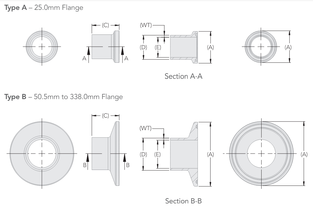 Pharmaceutical Ferrule (4") | ASME BPE Compliant | Length 28,5mm | 316L low sulphur (SF1)