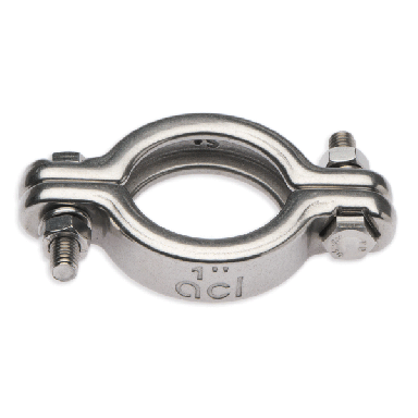 ACL Euro-Pure® clamp, stainless nut, 316L 2 segment bolted assembly. Double bolted clamp with spring washer barrel, polished.