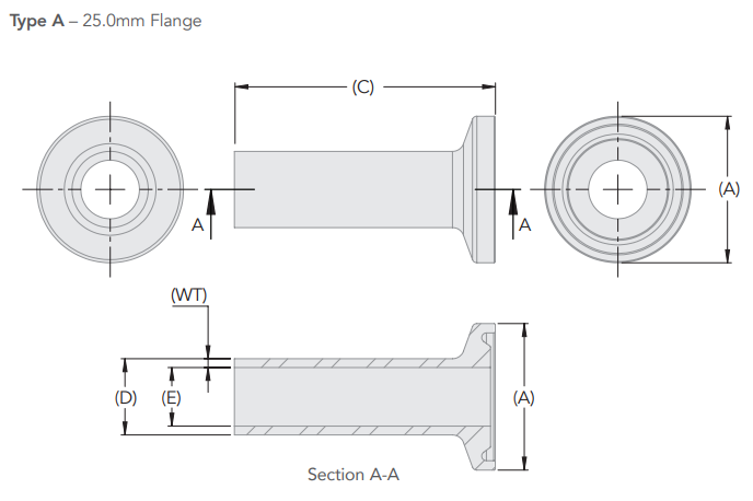 - • Flange (A) mm: 25
