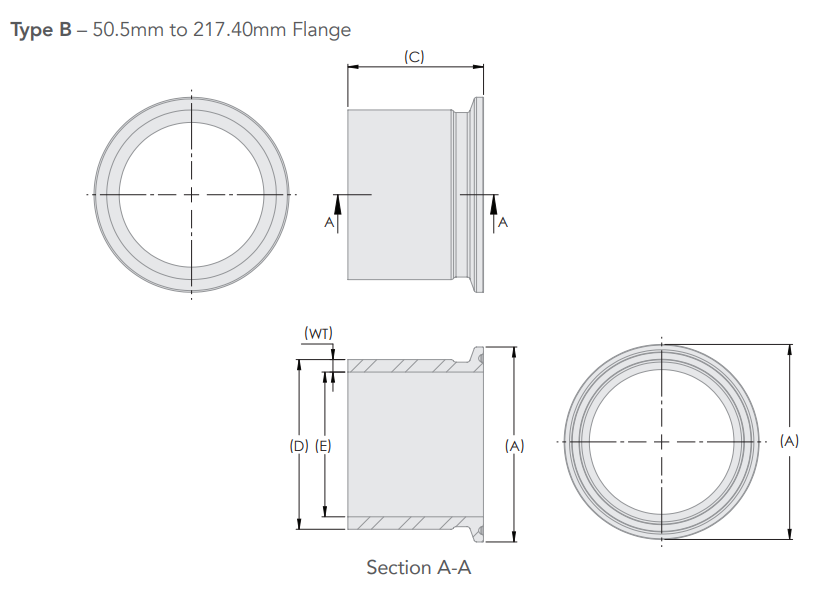 - • Flange (A) mm: 50.5
