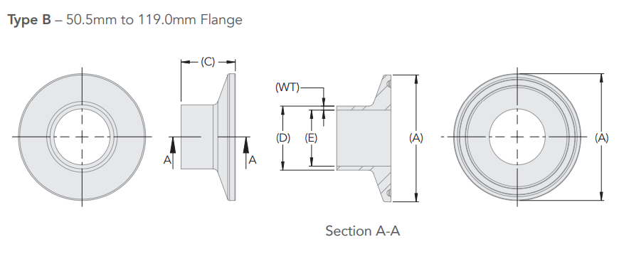 - • Flange (A) mm: 50.5
